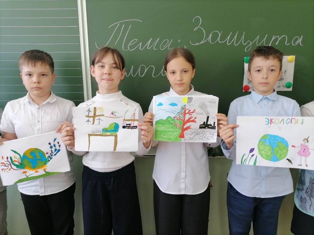 В 3-4 классах ребятам рассказывали о важности сохранения природы. Например, в 4 «Е» классе на внеурочном занятии учитель Кужелева О.П. рассказала ребятам, что Земля- наш общий дом и каждый человек, живущий в нем, должен бережно и заботливо к нему относиться, сохранять все природные богатства Земли!